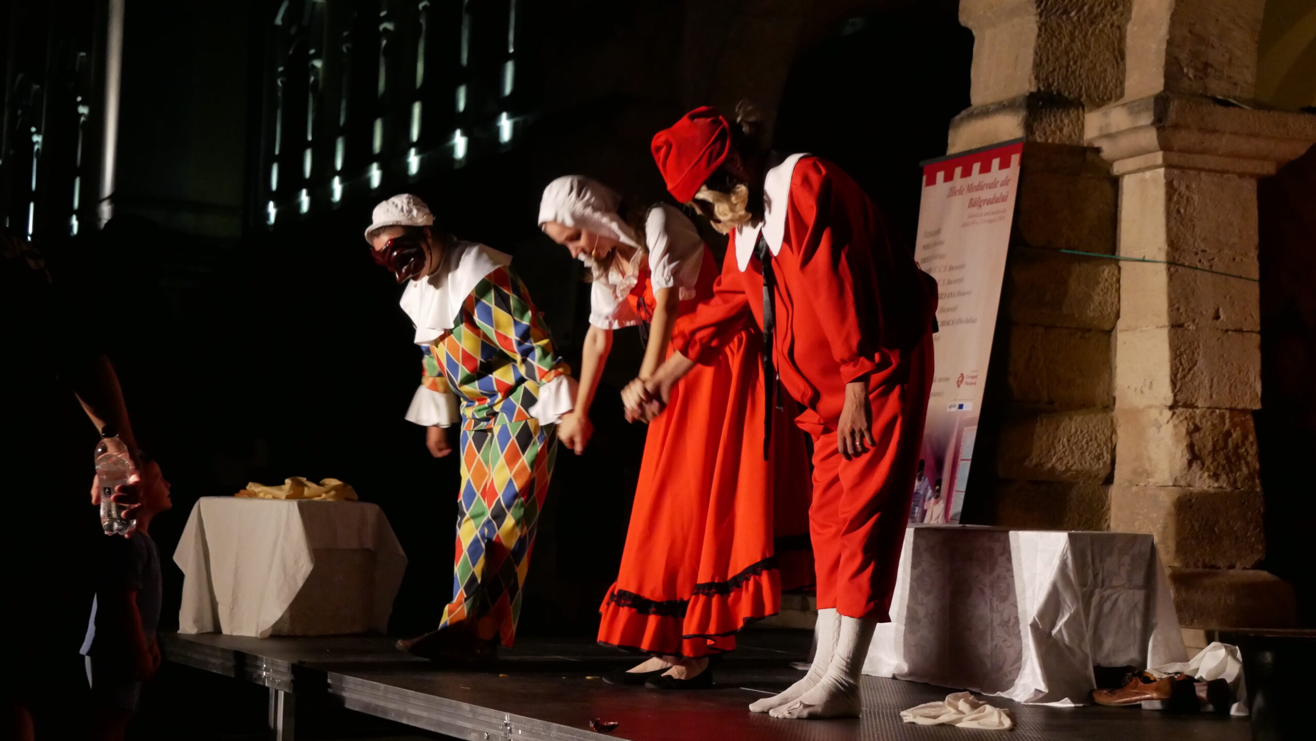 Commedia dell’Arte – Genul este caracterizat de un comic spumos, simplu, direct şi isteţ, de un ritm alert, aspecte interactive, pasaje musicale şi multă energie. Păstrând rădăcinile carnavalului veneţian, personajele poartă măşti care reprezintă trasături cheie ale pesonalităţii lor. În spectacolul Cine-i stăpânul?, Pantalone, negustorul bogat şi avar, este nevoit să reducă din cheltuielile casei devenită prea mare pentru buzunarele lui strâmte. Puterea lui va înfrunta încă o dată isteţimea servitorilor săi, Arlechino şi Colombina, pentru a arăta tuturor cine e stăpân pe … situaţie.
