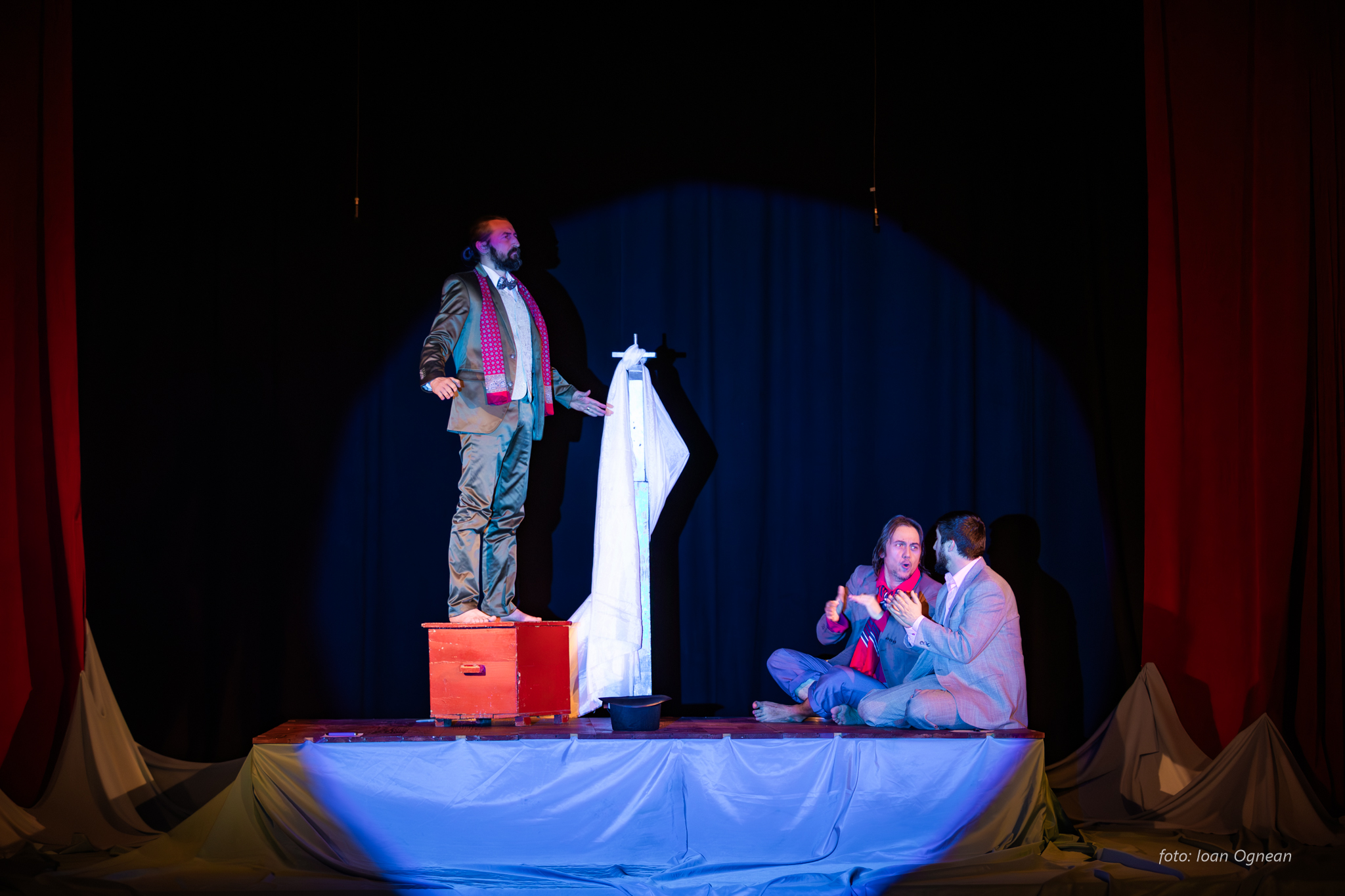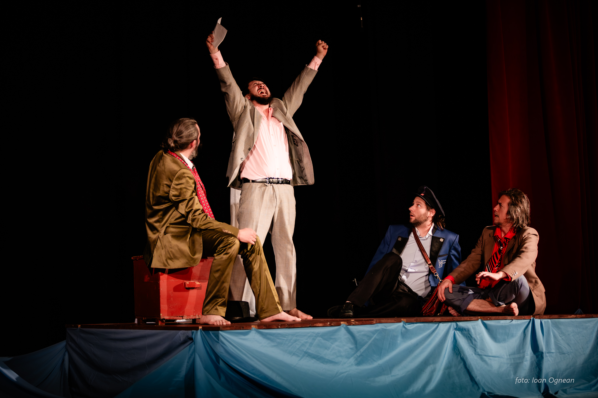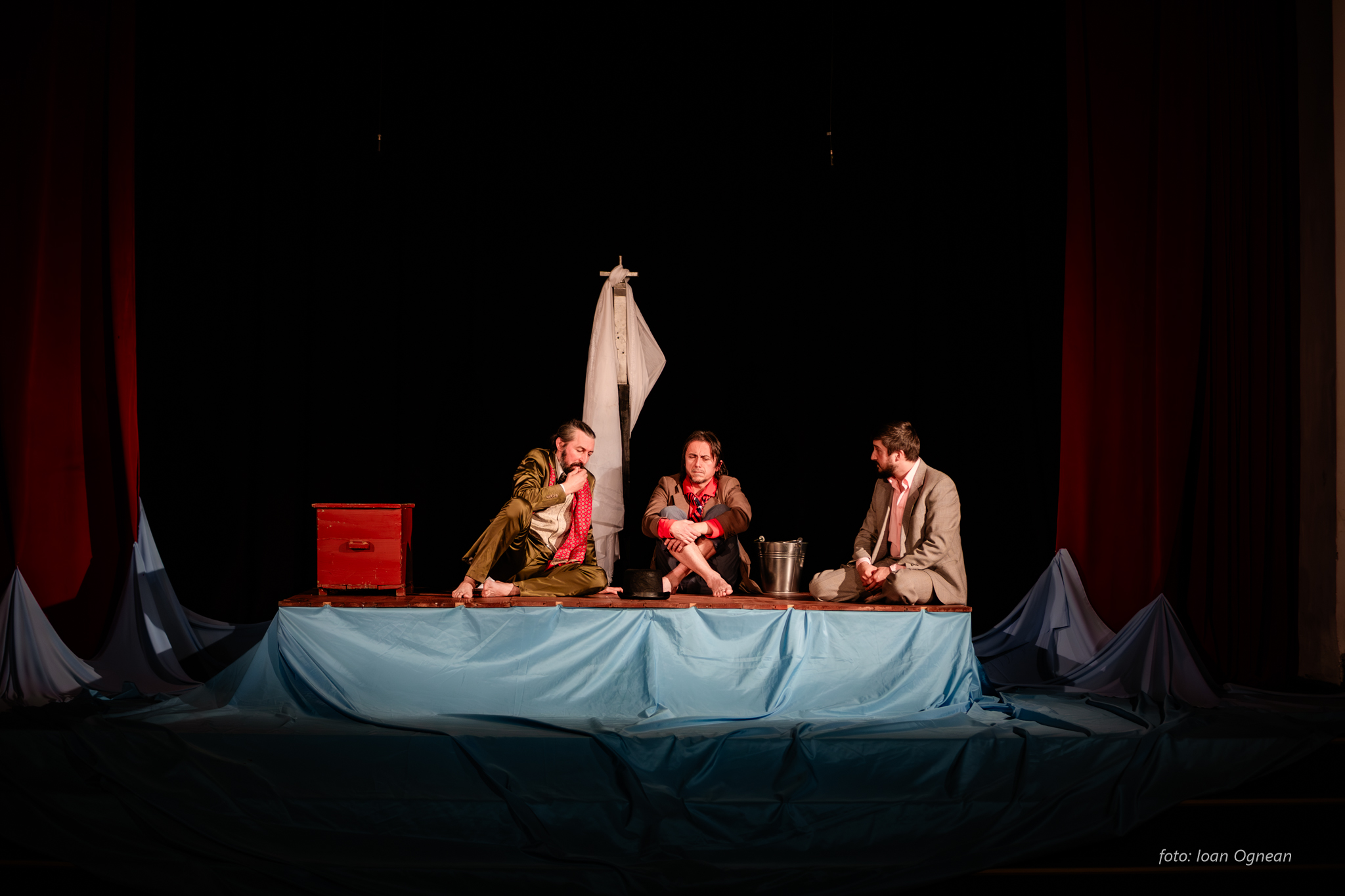 Sub presiune, suntem inventivi, găsim resurse ascunse, căutăm cu disperare o cale de a ne salva. Teatrul lui Mrozek este unul al absurdului, în spatele limbajului aparent ilogic se nasc în mintea spectatorului întrebări care sondează adâncul fiinţei, raporturile cu noi înşine şi cu societatea în care trăim. Câteva personaje, o situaţie care declanşează o criză şi care presează spre luarea unei decizii vitale. Ce este individul? Ce este libertatea? Ce este puterea? În ce măsură ne putem păstra umanitatea atunci când viaţa ne este ameninţată?…Iată câteva din întrebările la care vom căuta răspuns.. În largul mării.