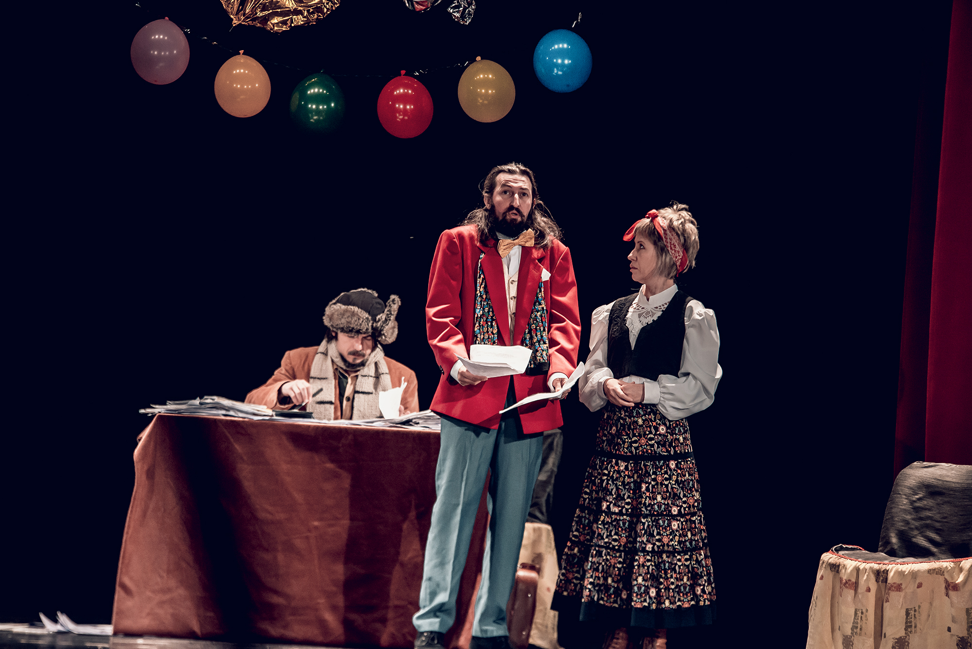 Pentru Hirin însă, aniversarea este un chin în plus, fiindcă are de terminat un raport important despre activitatea bancii, raport pe care Directorul Andrei Andreevici – tipul individului grandoman, fără calităţi, dar cu multe pretenţii, care şi-a construi cariera pe munca subordonaţilor săi – îl va prezenta Consiliului ca fiind întocmit de el. În mijlocul agitaţiei gnerale, şi ziua e doar la început, Hirin duce o adevărată luptă titanică pentru a-şi mulţumi şeful şi pentru a face faţă atât soţiei acestuia, Tatiana, cât şi mătuşii Merciutkina, care are o problemă importantă de rezolvat la bancă tocmai acum.