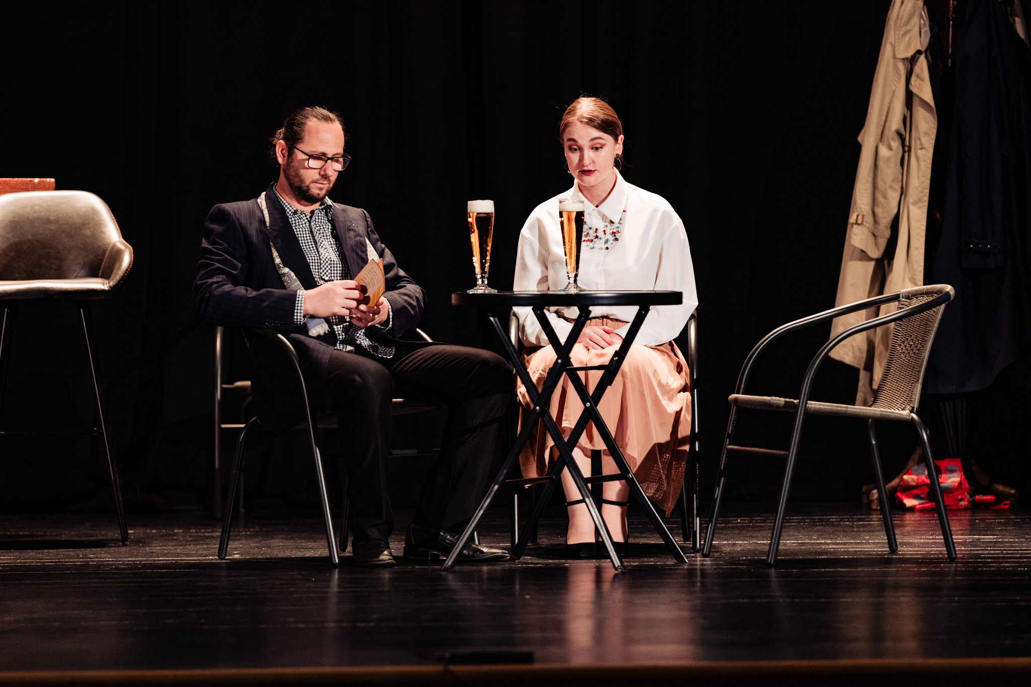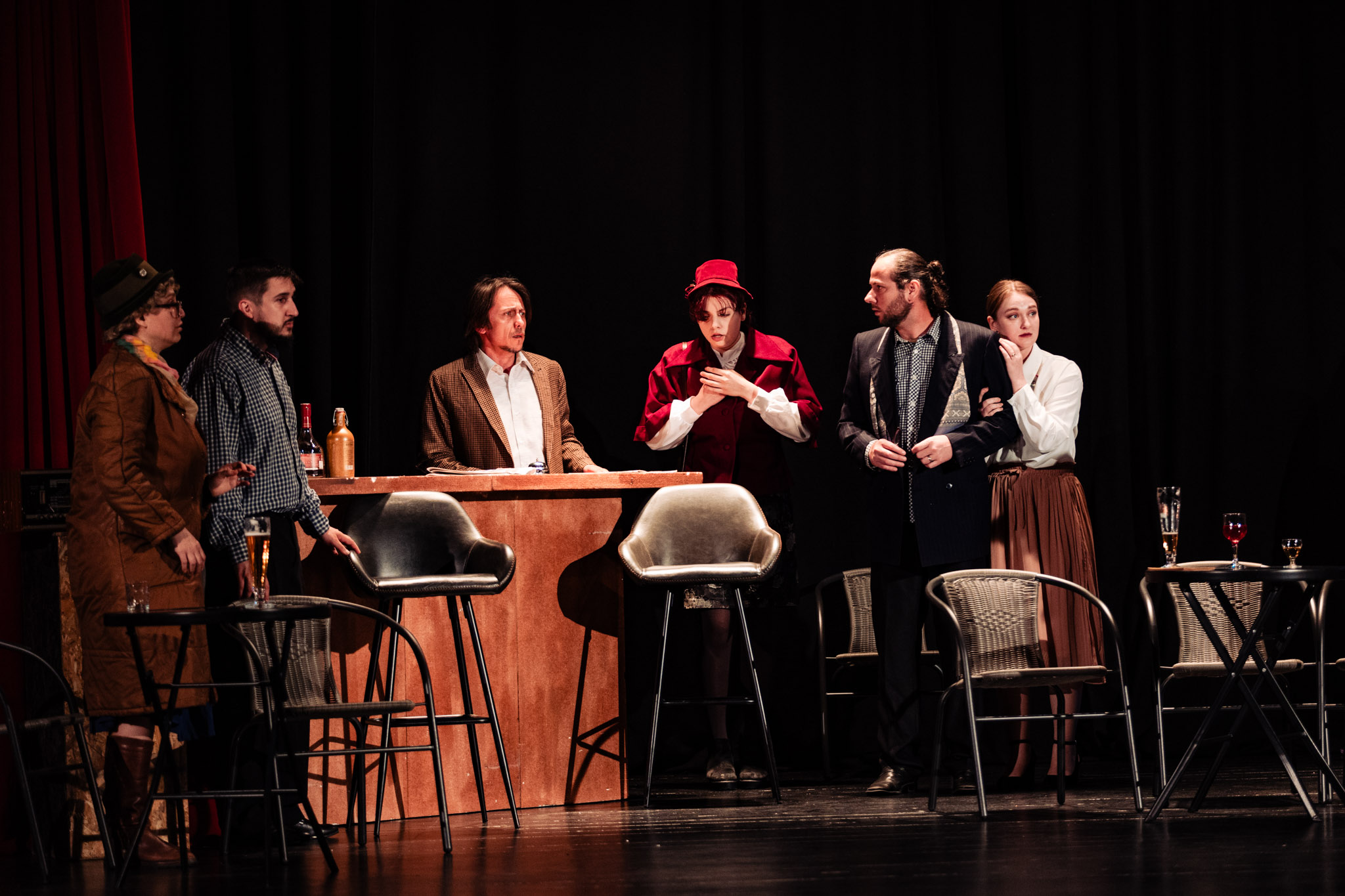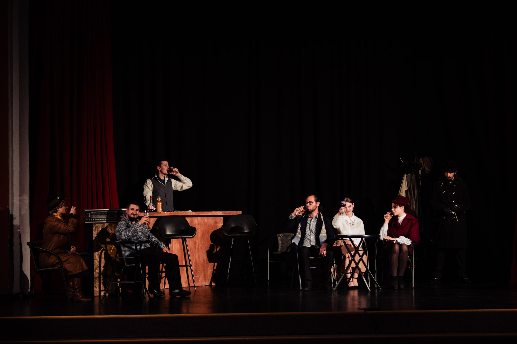 Străinul este un spectacol adaptat după piesa„Trandafirul şi Coroana” scrisă de John Boynton Priestley (13.09.1894 – 14.08.1984), prolific prozator şi dramaturg englez. Cadrul piesei este reprezentat de un bar insignifiant din nord-estul Londrei, în care încep să apară, rând pe rând clienţii obişnuiţi ai casei sau oameni care se refugiază înăuntru din pricina ploii de afară, fiecare comentând asupa greutăţii traiului zilnic şi necazurilor vieţii. Deşi pare să fie un sfârşit de zi obişnuit, într-un bar nu poţi ştii niciodată cine poate intra…